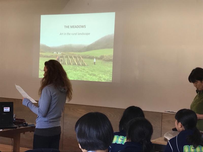 また、10月27日には小国中学校8年生に美術の授業をしていただきました。ソニアさんは世界の穀物保存様式など、農家の方の生業から自然に生まれた文化を美術的に高く評価しています。