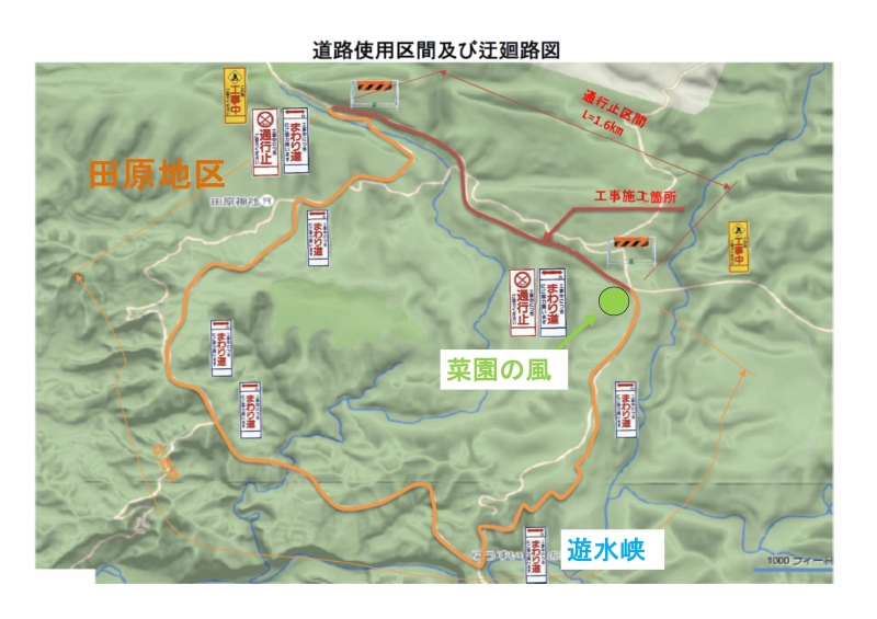 迂回路は、町道田原千本松線、町道坂下・宇土谷線などをご利用ください。