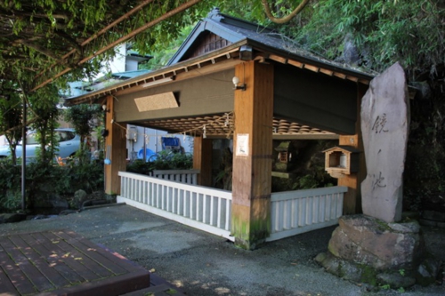 小国両神社の西隣にあり、大ケヤキの根本から清水が湧き出でています。