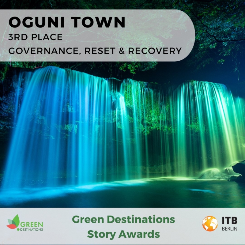 国際的な認証団体であるグリーンデスティネーションズが実施する持続可能な観光地域づくりの表彰制度「世界の持続可能な観光地TOP100選2022」に小国町の鍋ケ滝事前予約制の取り組みが選出され、この度、3月7日から3月9日にベルリンで開催されたグリーンデスティネーションストーリーアワードにおいて「GOVERNANCE,RESET&RECOVERY(観光地のガバナンス体制の構築、観光地の再生)」部門において世界3位を受賞しました。